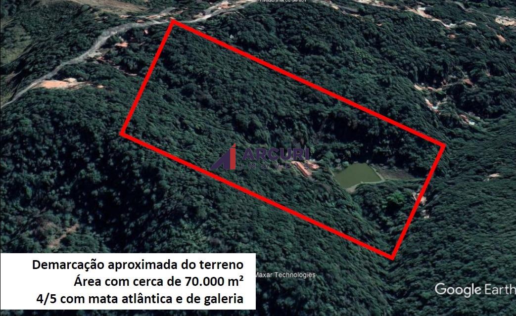 Demarcação do terreno com área de 70.000 m² sendo 4/5 com mata atlântica e de galeria